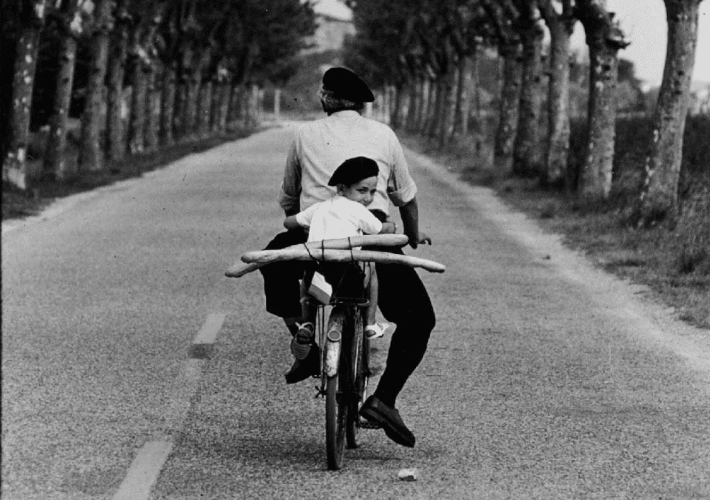 Une départementale paisible bordée de platanes. L’homme en chemisette blanche pédale, son fils sur le porte-bagage, sourire tendre adressé au photographe par-dessus son épaule. Le cliché est célèbre, saisi en mai 1955 sur une route de Provence par Elliott Erwitt. Ce qui le rend impérissable ? Les deux baguettes de pain fixées par un sandow au porte-bagage, l’équilibre parfait de la scène, mais surtout, les bérets que père et fils partagent dans une harmonie qui fleure bon la France des Trente Glorieuses et constituera dès lors, et pour les décennies à venir, l’imagerie de notre doux pays outre-Atlantique. Le responsable ? Un certain Bill Bernbach, génie de la publicité new-yorkaise, qui choisit la photo d’Erwitt pour illustrer la campagne de promotion touristique que son agence est chargée de réaliser pour la France aux États-Unis. Ainsi est scellée la légende de la baguette et du béret.